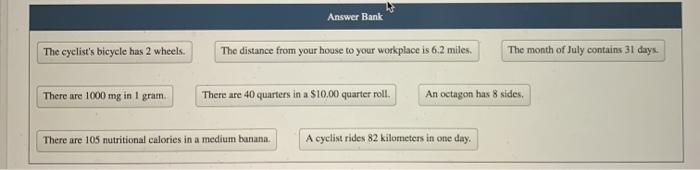 Exact Measured Answer Bank A cyclist rides 82 kilometers in one day. There are exactly 12 eggs in a dozen. Most exact numbers are integers but its possible for a value to have a decimal point.